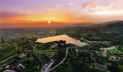 晨曦中的周至县周塬路和骆峪水库。受访者供图