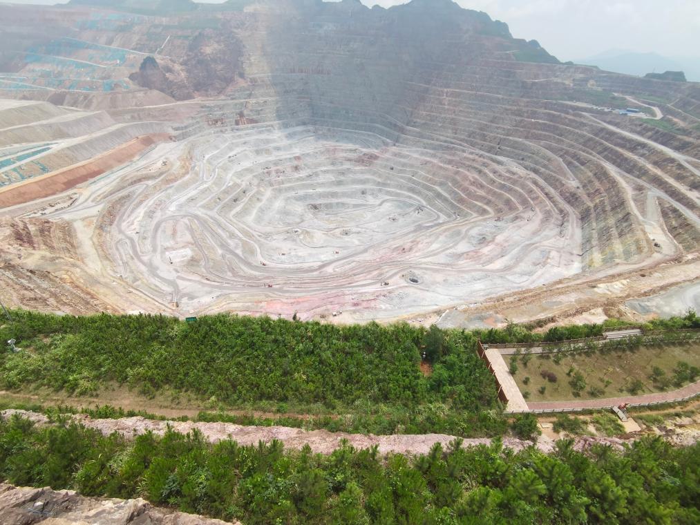 边生产边进行矿坑边坡治理的紫金山金铜矿。新华社记者 秦宏 摄