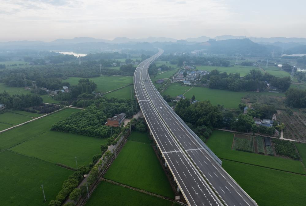 俯瞰四川天府新区至邛崃高速公路一角(无人机照片)。新华社记者江宏景 摄