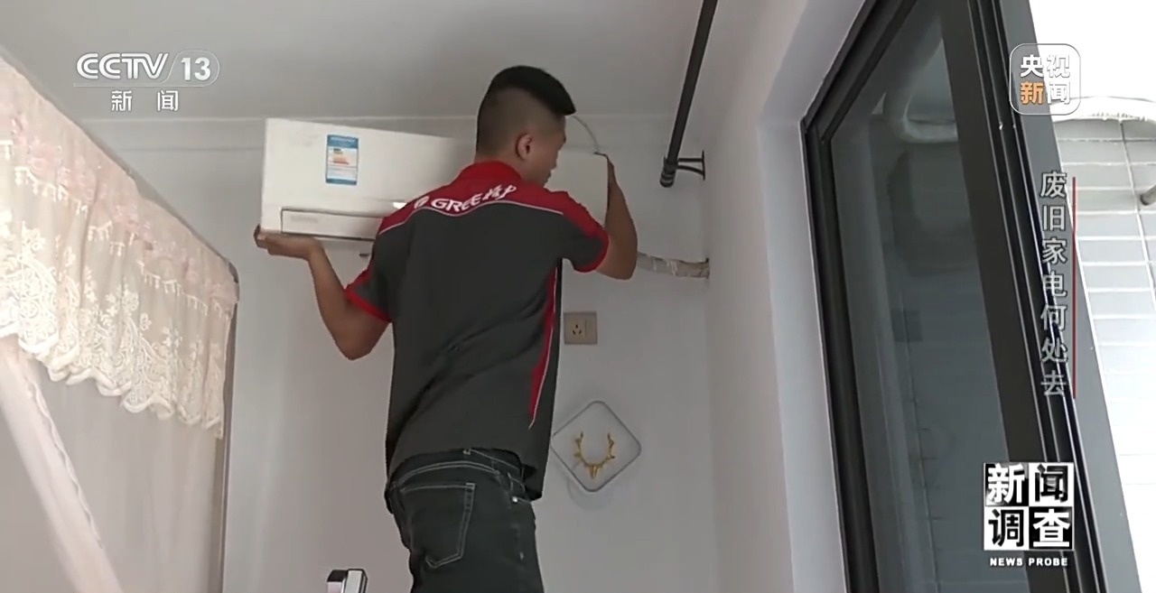 新空调安装完毕后,施工师傅们也会帮忙清理垃圾,并将旧机一并拆除运走。2023年,中国约有8000万台电视机、5000万台电冰箱、4000万台洗衣机、6000万台空调和3000万台电脑需要进行报废。