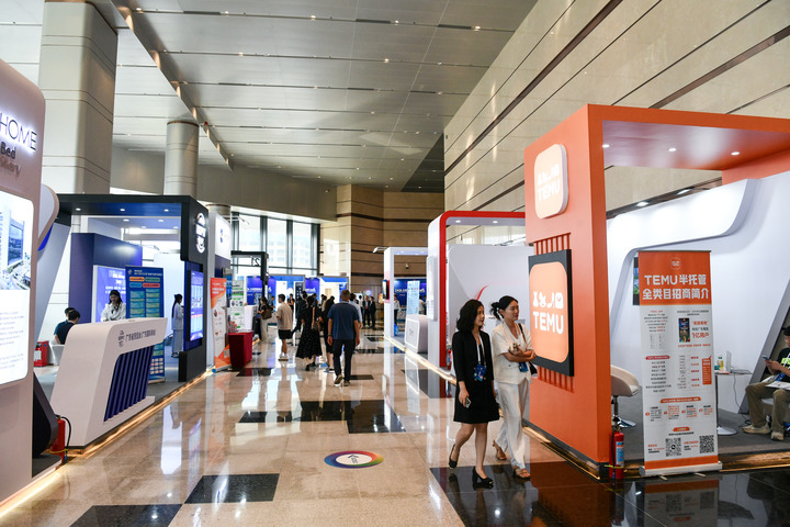 10月8日,嘉宾们在2024全球跨境电商年会(珠海-横琴)企业展示区参观。新华社记者 梁旭 摄