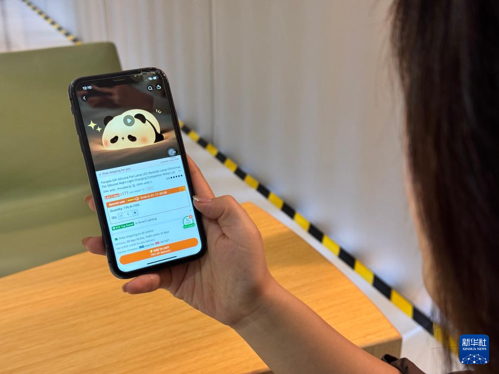 9月4日,Tume商家林洪灿在介绍产品(视频截图)。新华社记者 潘禹杰 摄