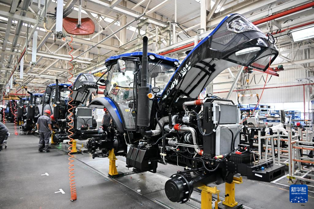在潍柴雷沃智慧农业科技股份有限公司拖拉机工厂,工人在装配智能拖拉机(8月21日摄)。新华社记者 李紫恒 摄