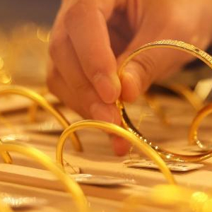10月23日,浙江省湖州市德清县乾元镇一家金店的营业员在整理黄金首饰。新华社发(倪立芳摄)