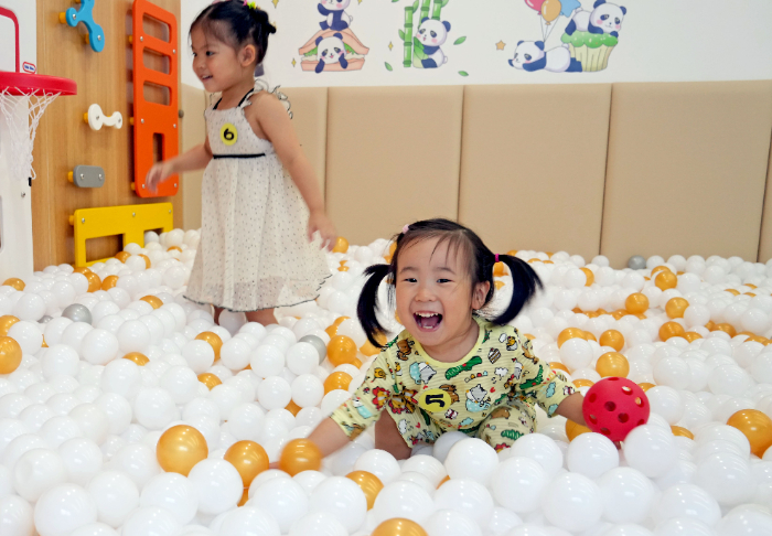 上海市静安区江宁路街道社区党群服务中心内的“宝宝屋”,小朋友们在玩耍(2022年9月27日摄)。新华社记者 刘颖 摄