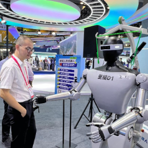 “我们可以和你合照吗”“请介绍下你自己吧”……中博会广东展馆现场,广州里工实业有限公司自主研发的“里掂人形机器人”正在和观众交流互动。