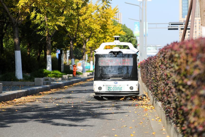 无人清扫车在街头工作(2024年11月26日摄)。新华网发 (德清县委宣传部 供图)