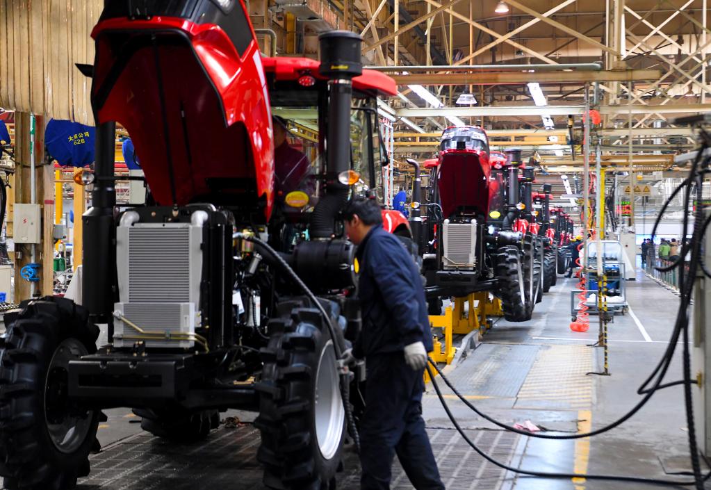 12月27日,中国一拖集团有限公司的员工在总装车间流水线上作业。新华社记者 郝源 摄