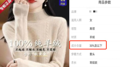 但对于普通消费者来说,买到合格的羊绒衫似乎并不容易。尤其是在某些电商平台上,部分售价百元以下、标注“100%纯羊绒”的产品存在成分虚标、乱标的问题。