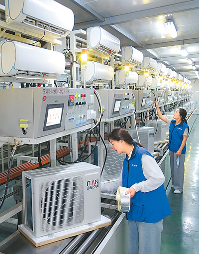 安徽省阜阳盈田智能科技有限公司的空调生产车间。王 彪摄(人民视觉)