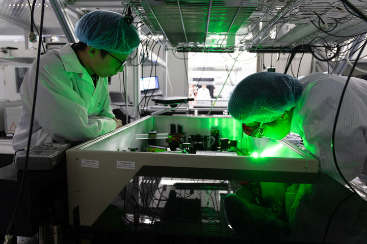 2024年10月16日,科研人员在综合极端条件实验装置(怀柔)超快光场物性研究系统实验站调整光路。2025年2月26日,综合极端条件实验装置通过国家验收,这标志着我国建成了国际先进的同时具备低温、超高压、强磁场和超快光场等极端条件为一体的用户实验装置。新华社记者 金立旺 摄