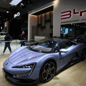 2025年3月3日,小米SU7 Ultra汽车在西班牙巴塞罗那举行的2025年世界移动通信大会上展出。新华社记者 赵丁喆 摄