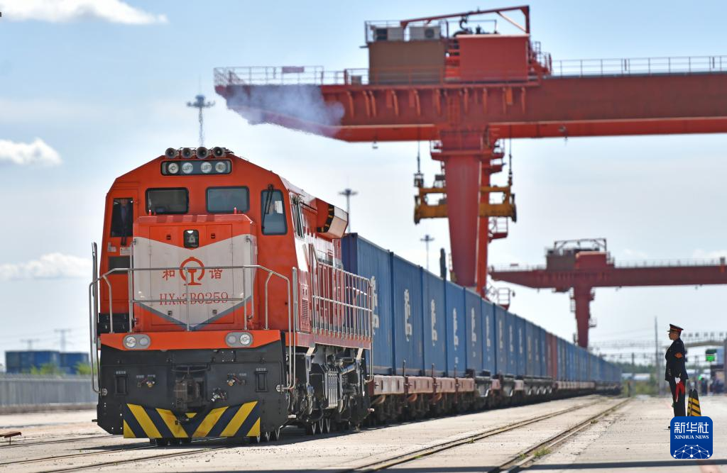 2023年9月19日,X8103次列车从中欧班列(沈阳)集结中心出发。列车将经由满洲里口岸驶向欧洲。新华社记者 杨青 摄