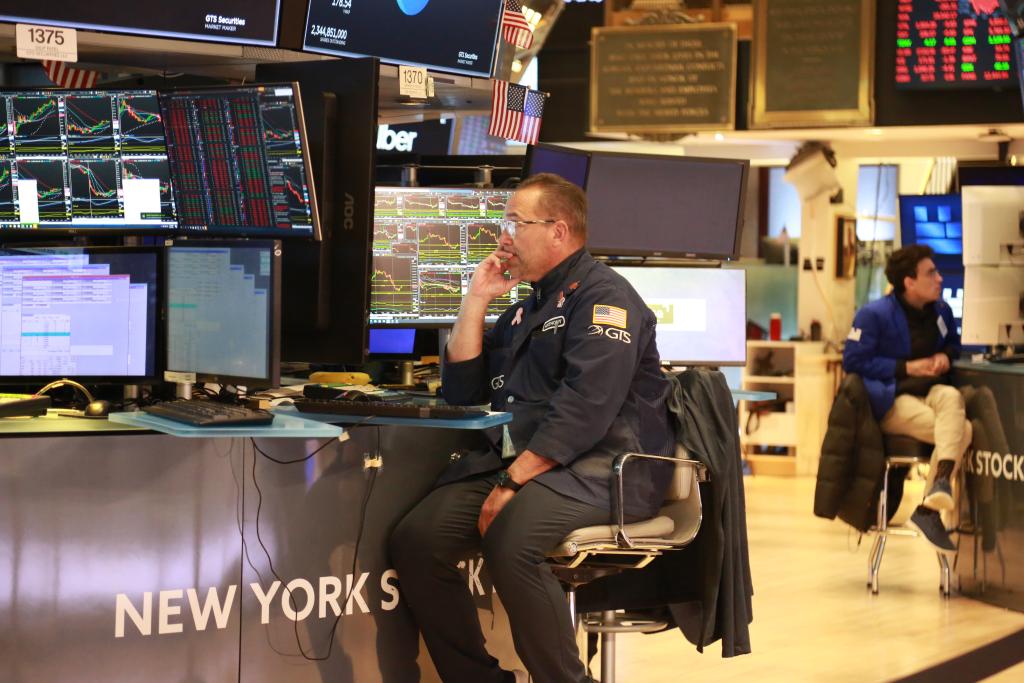 3月4日,交易员在美国纽约证券交易所交易大厅工作。新华社记者刘亚南摄