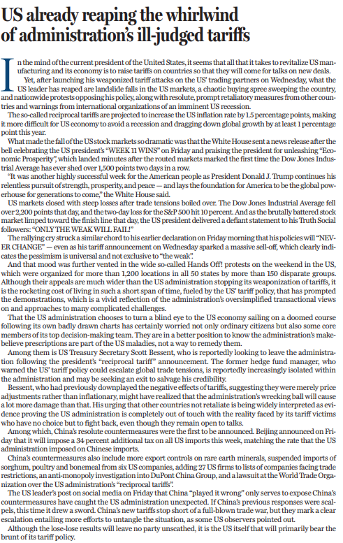 本文编译自《中国日报》4月7日社论