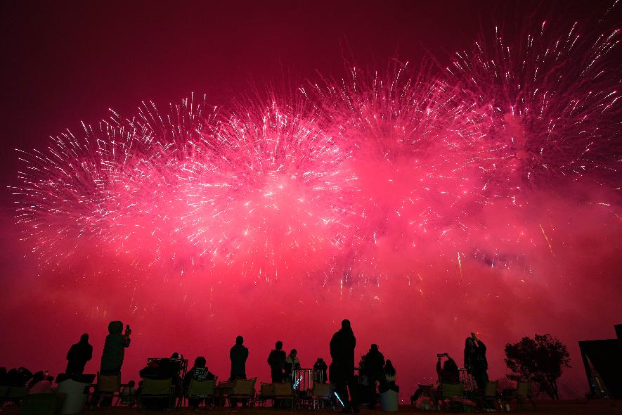2025年2月15日,观众在湖南省浏阳市天空剧院观赏“春焰启幕 星耀浏阳”周末焰火秀。新华社记者 薛宇舸 摄