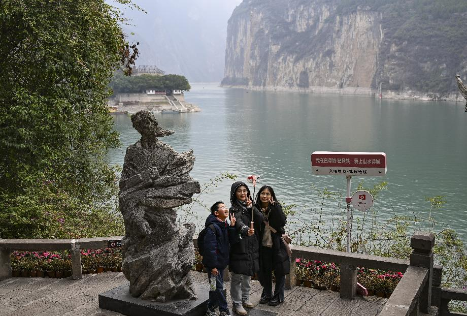 游客在重庆奉节白帝城游览拍照(2025年2月13日摄)。新华社记者 王全超 摄