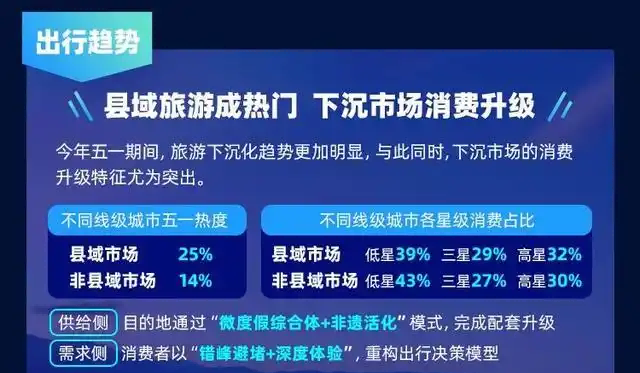 携程发布的《2025“五一”大数据预测报告》显示,“五一”假期县域市场旅游热度同比增长25%,增速高出高线城市11个百分点。木鸟民宿平台的数据显示,截至4月17日,县域游订单同比增长126%。