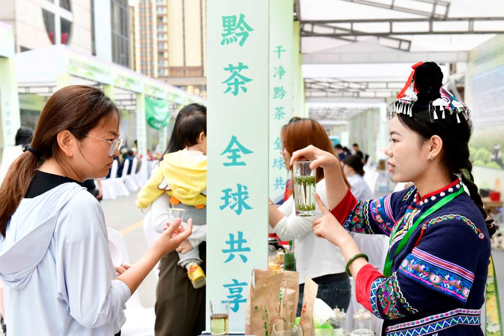 “尝尝我们湄潭的翠芽。”贵州湄潭初艺茶业有限公司的销售员周定仙一边热情招呼客人,一边手法娴熟地把开水冲入茶盏,扁平的茶叶慢慢舒展开来,先是打着旋浮上来,又慢悠悠沉入杯底,沁人的香气漾开,摊前的茶客早已等不及要啜上一口……