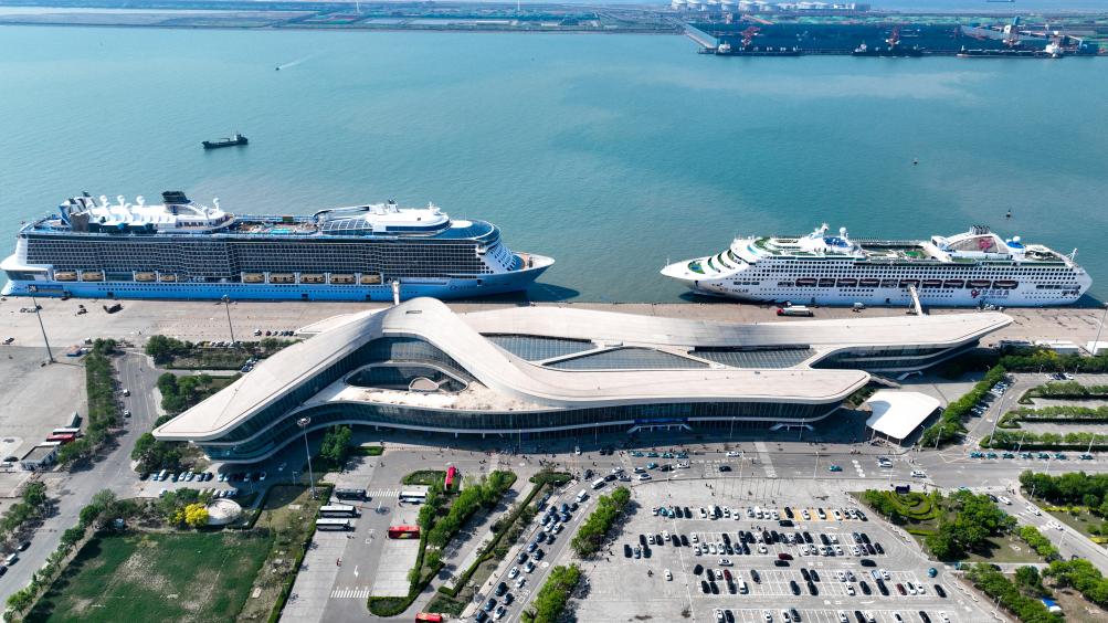 天津国际邮轮母港“双船同靠”。新华社发