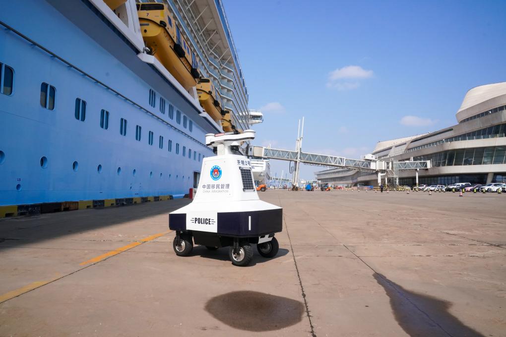 据了解,2024年,天津国际邮轮母港业务量稳居中国第二、北方第一。天津东疆边检站立足“双轮同靠”勤务特点,系统规划旅客通关流程,科学配置警力资源,同步开启双侧查验场地,将窗口前移,在海上提前采集旅客和船员证件信息,做好旅客信息的预录工作,实现旅客“靠港即下”;同时主动对接联检单位、邮轮公司、码头运营方及旅行社,通过信息共享和流程优化,使出入境旅客候检时间显著缩短。上线自动行进监护巡检机器人等智能装备,使口岸管控精准度得到跨越式提升,构建起“智能查验+人工服务”双轮驱动的立体化通关保障体系。
