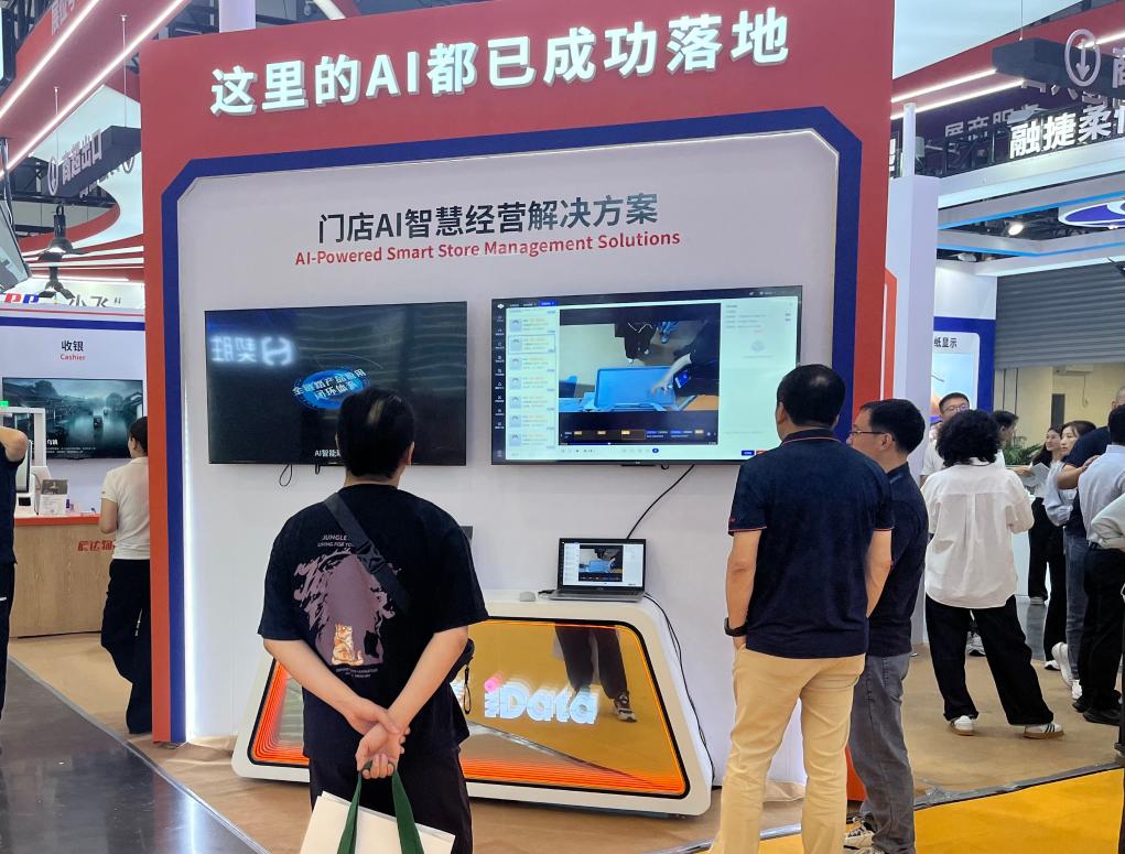 5月9日,第二十五届中国零售业博览会现场的AI技术相关展台。新华社记者赵瑞希 摄