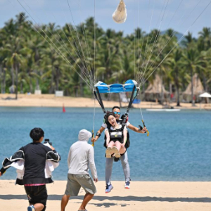 刚刚过去的“五一”假期,三亚塔赫跳伞基地日均接待量较平日增长约70%,2024年基地接待跳伞客人超过1万人次,今年一季度已经达到6000人次。三亚塔赫极限运动俱乐部有限公司总经理张恩铭说:“低空旅游以高空视角赋予传统景区全新魅力,尤其受年轻群体追捧。”