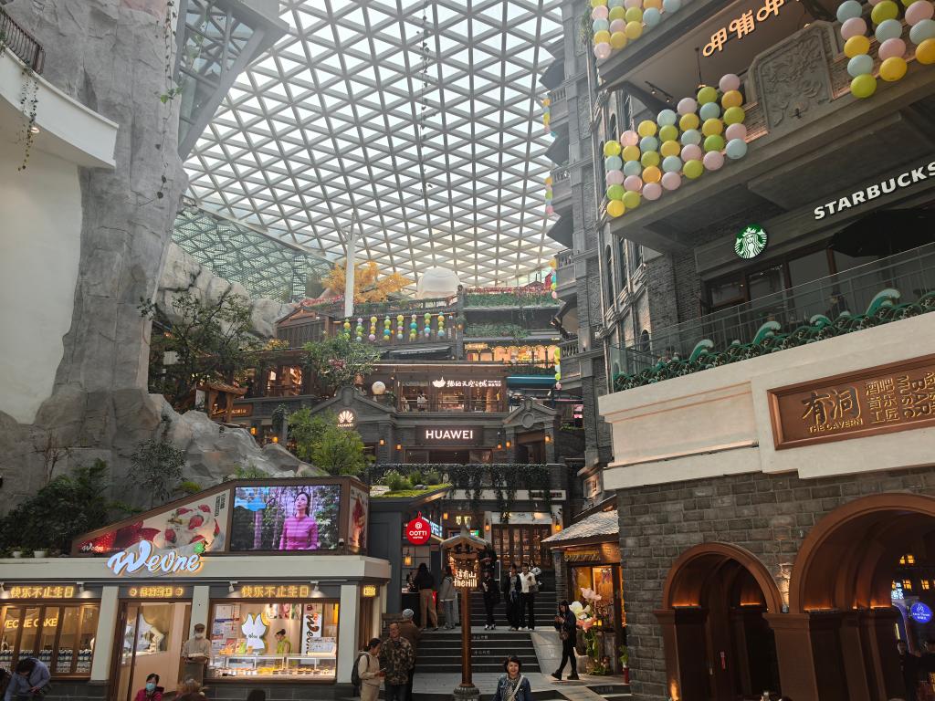 原创冰箱贴和国风服装、非遗技艺现场展示、创意书店和萌宠店……全国游客纷纷来“这有山”体验,商场一年接待约1000万人次,其中节假日期间外地游客占六至七成。