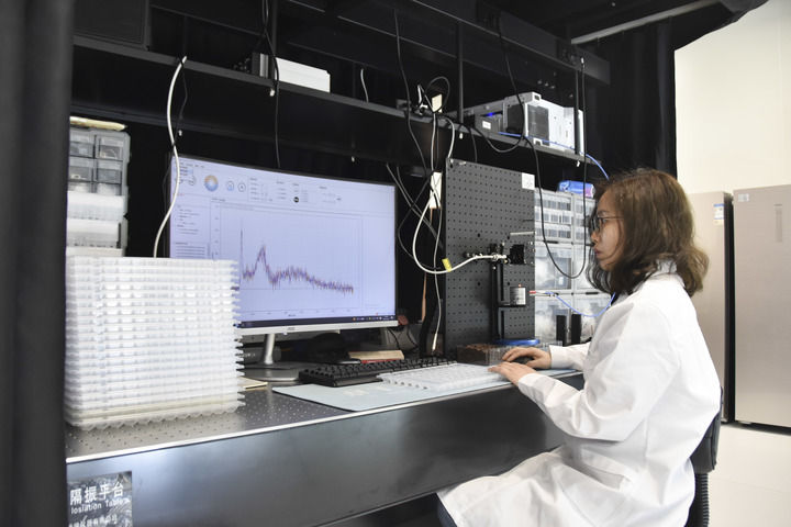 2025年4月25日,在湖南长沙,岳麓山实验室的研究人员在采集种子光谱数据。新华社记者 白田田 摄