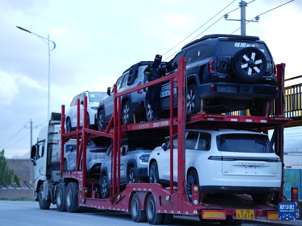 6月1日,在新疆伊尔克什坦口岸,边检站执勤民警在检查出口商品车。新华社发(费强 摄)