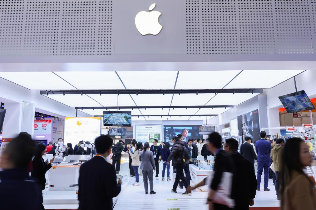 2024年11月26日,在第二届链博会数字科技链展区,美国苹果公司精选4家中国供应商携手亮相展台。新华社发