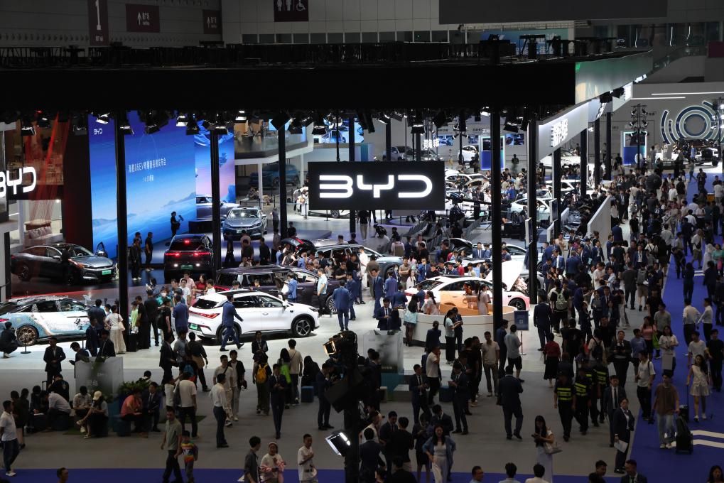 2025年5月31日,2025粤港澳大湾区车展在深圳国际会展中心(宝安)举办,观众在比亚迪展馆观展。 新华社记者 梁旭 摄