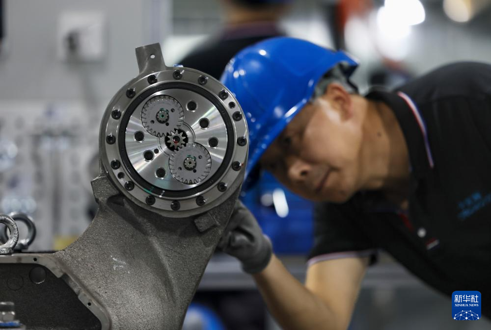 2024年11月13日,在成都卡诺普机器人技术股份有限公司,工作人员在机器人本体装配车间检查组装细节。 新华社记者 江宏景 摄