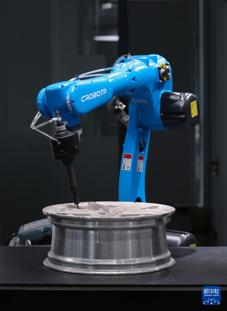 2024年11月13日拍摄的一台卡诺普机器人公司生产的应用于汽车轮毂去毛刺的工业机器人。 新华社记者 江宏景 摄
