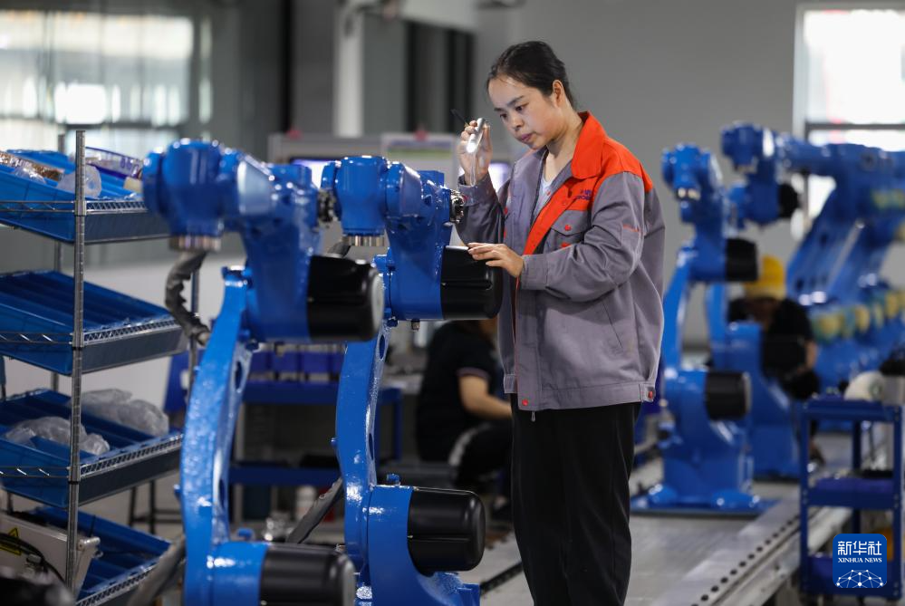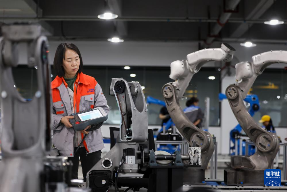 2024年11月13日,在成都卡诺普机器人技术股份有限公司,工作人员对工业机器人产品进行出厂前的测试。 新华社记者 江宏景 摄