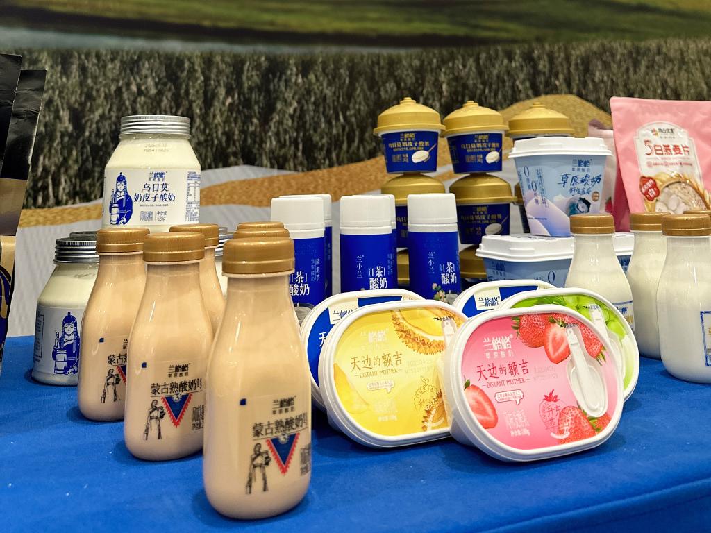 这是在2025世界品牌莫干山大会上展出的乌兰察布酸奶产品。(受访者供图)