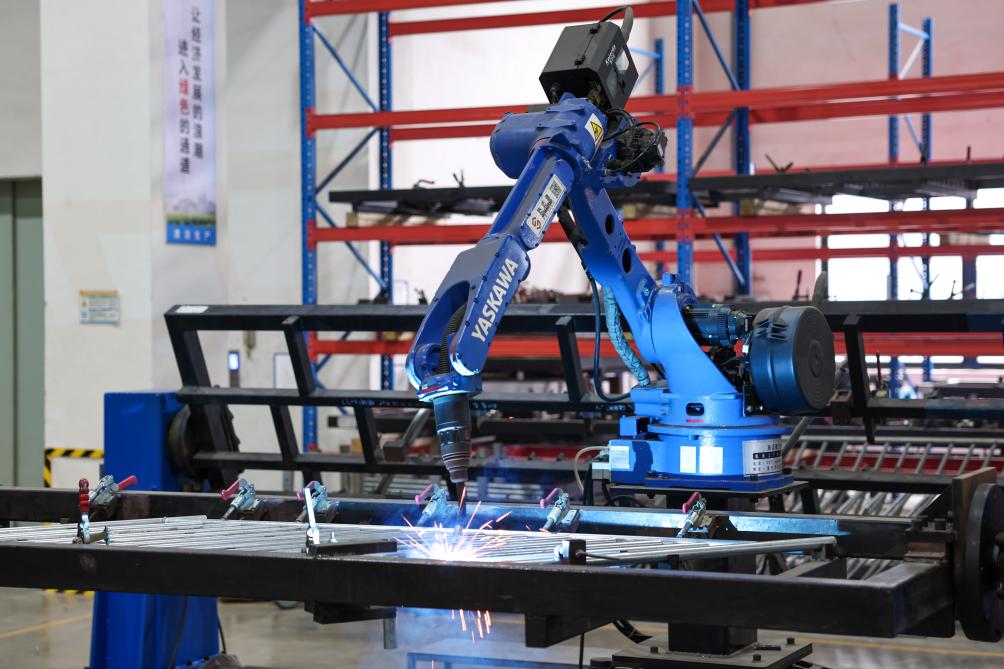 凯奇集团有限公司的机械臂在进行焊接作业。新华社记者 江汉 摄