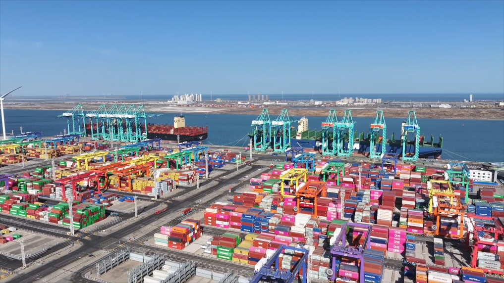 天津港持续推进绿色港口建设,建成全国首个防波堤风电项目,截至今年5月,天津港年发电能力达3.4亿千瓦时,满足全港60%能耗需求,集装箱码头新能源倒运车辆占比达100%。