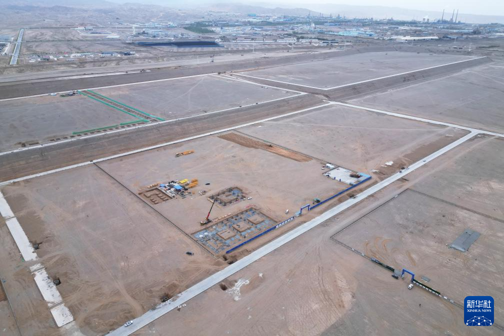 在甘肃省玉门市老市区化工园区,甘肃巨化高性能硅氟新材料一体化项目建设正酣(2025年5月21日摄,无人机照片)。新华社记者 张智敏 摄