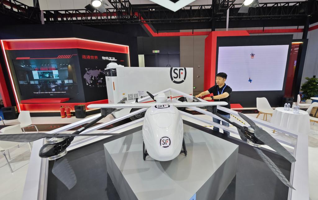 在距离廊坊临空国际会展中心约30公里的顺丰廊坊转运中心,仓储拣货机器人来回穿梭,精准拣货、打包,一件件包裹直接流入转运中心进行外发。在这个占地3.7万平方米的物流中转场内,无人配送车精准发货,无人叉车24小时连续作业……