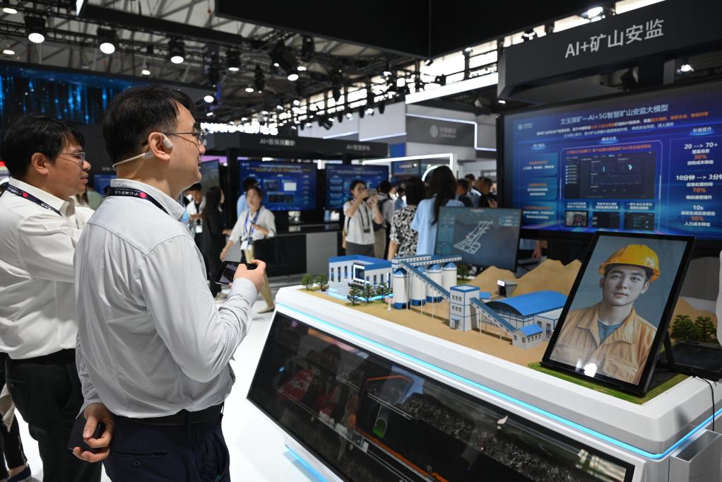 6月18日,观众在中国移动展台了解“AI+矿山安监”技术方案。新华社记者 陈爱平 摄