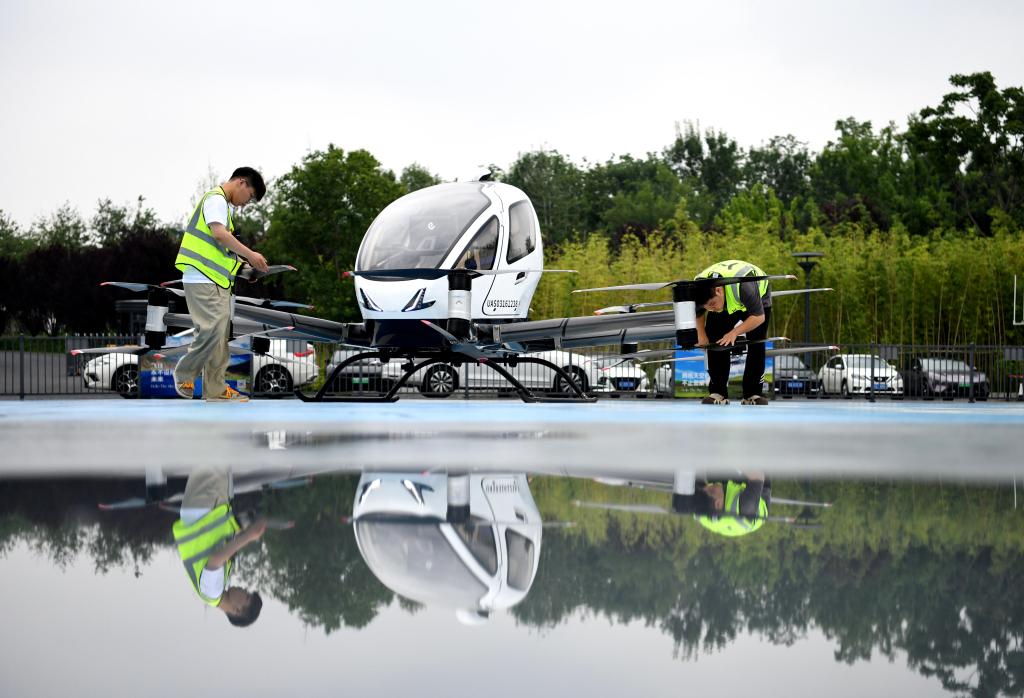 6月23日,一架电动垂直起降航空器在合肥骆岗公园演示飞行。新华社发(赵献富摄)