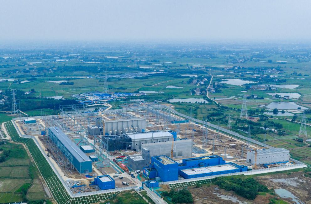 6月26日,±800千伏合州换流站低端换流变压器驶入合州换流站(无人机照片)。新华社记者 刘军喜 摄