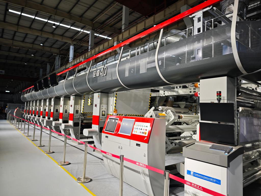 “这台至睿4.0智能高速凹版印刷机,速度达450米/分钟,套印精度在±0.05毫米,广泛应用在各类食品、药品、日化等包装的印刷,其印刷色数达到10色,可以精准、智能地还原图案色彩。”陕西北人技术中心负责人陈明辉向记者介绍,“再看那边的干法复合机,它可实现高品质复合,广受食品药品包装领域认可。还有CL系列精密涂布机,适用于光学膜、新能源等领域,可实现高精度涂布。”