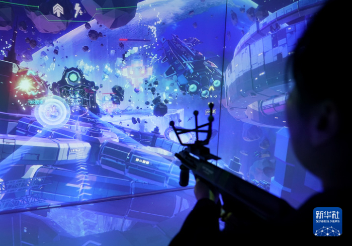 3月28日,参观者在“幻聚·多维宇宙”沉浸式科幻展中体验XR交互游戏。新华社记者张晨霖摄