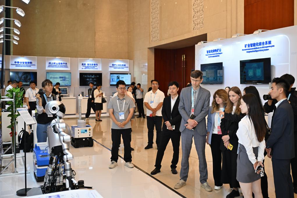 7月11日,参会嘉宾在2025上合组织数字经济论坛互动体验区参观。新华社记者 孙凡越 摄