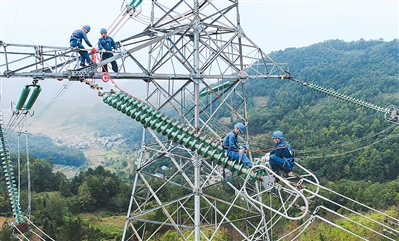 为做好迎峰度夏电力保供工作,南方电网贵州安顺供电局提前谋划,对输电线路、设备开展横向到边、纵向到底的巡检消缺工作,确保电网安全运行和电力可靠供应。图为该供电局输电管理一所工作人员日前对辖区输电线路进行运维消缺。陈 娟摄(人民视觉)