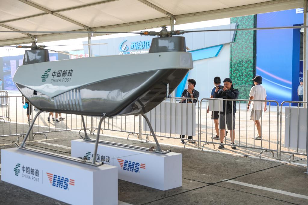 7月12日,重庆梁平机场,观众在参观了解低空物流无人机。新华社记者 黄伟 摄