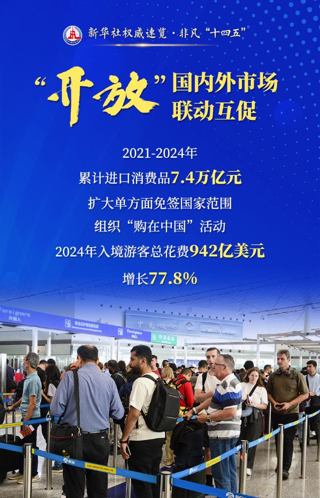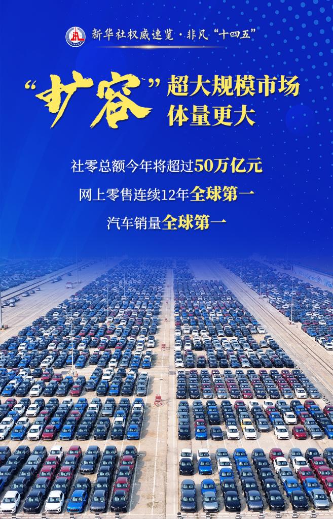 超大规模市场体量更大,品质消费走进千家万户,新型消费亮点纷呈……“十四五”期间,我国消费市场出现了很多新的变化和亮点。商务部部长王文涛18日在 “高质量完成‘十四五’规划”发布会上,用“扩容”“提质”“焕新”“开放”四个词概括了这五年消费市场的特点。跟随这组海报,一起看看吧。