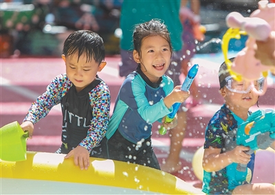 广东深圳,小朋友在戏水。朱洪波摄(人民视觉)